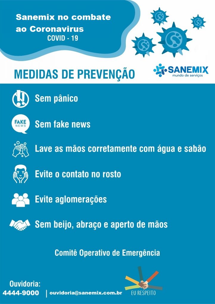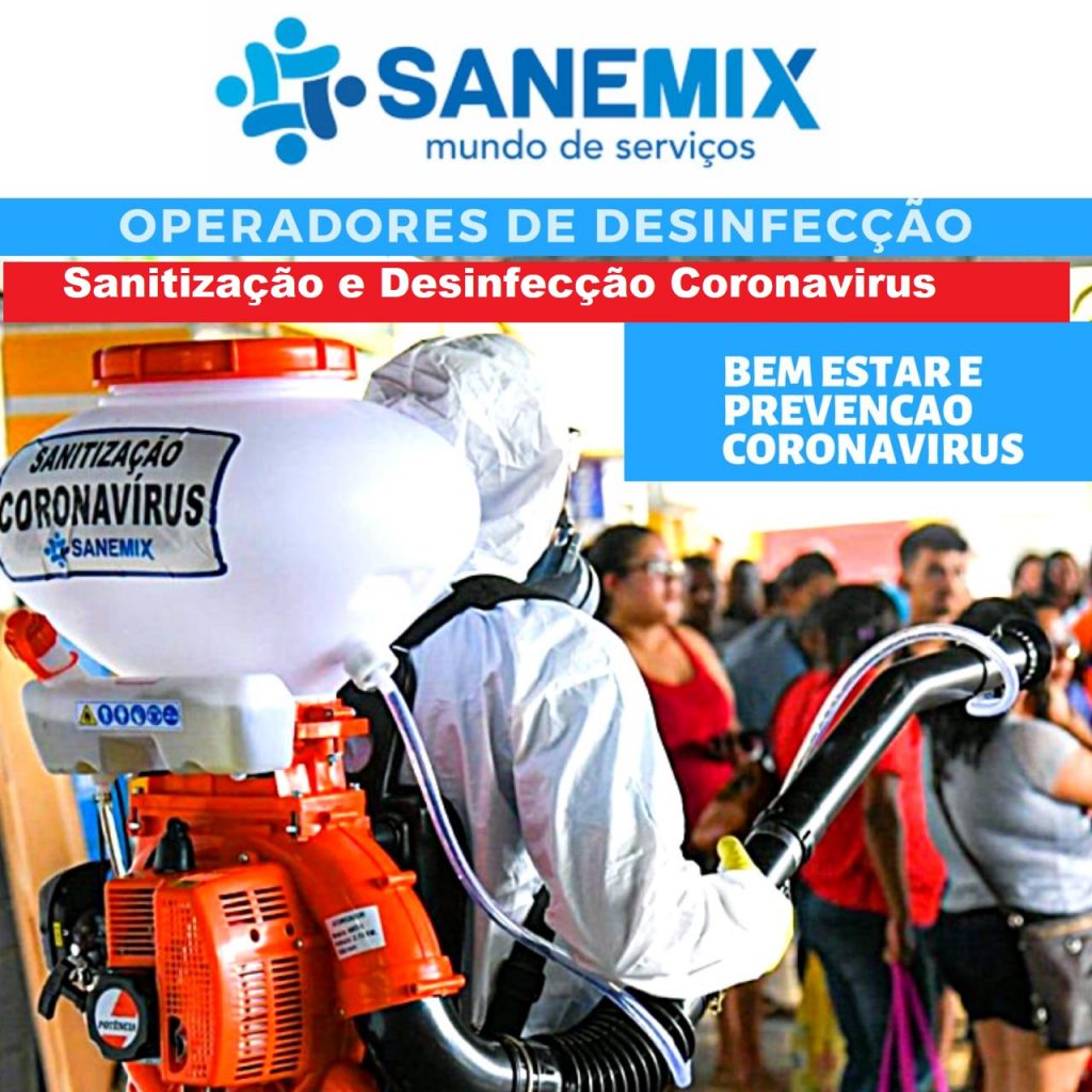 1. Sanemix realiza aplicação de diversos procedimentos ao combate do coronavirus, nossa missão nesta guerra é prevenir contaminação do virus por contato em superfícies, ambientes, ar e objetos.